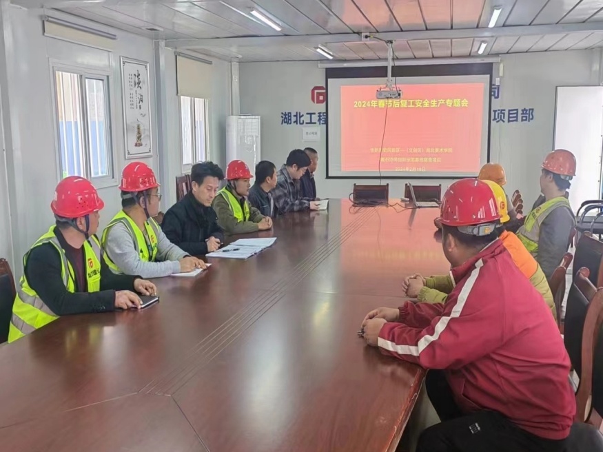 圖為華新美院項(xiàng)目開展2024年節(jié)后復(fù)工復(fù)產(chǎn)安全生產(chǎn)專題會