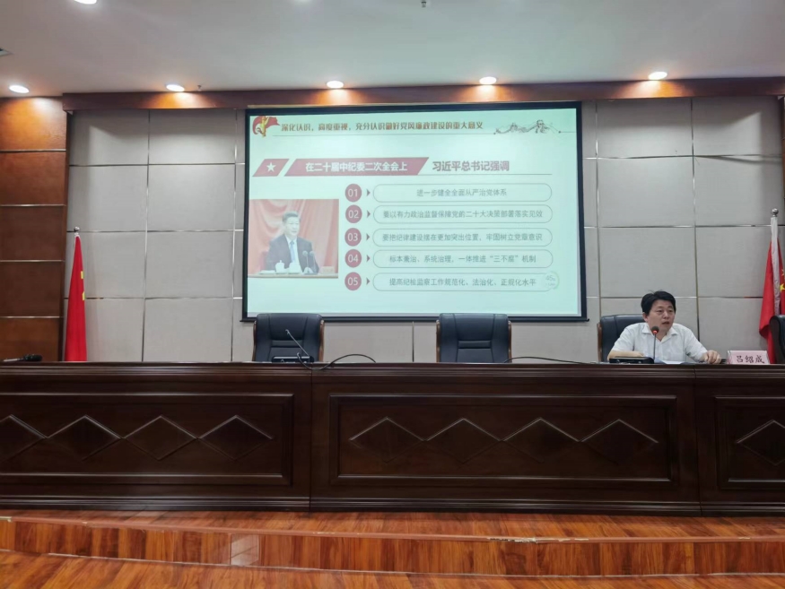 呂紹成向全體黨員講授題為《堅(jiān)定理想信念嚴(yán)守紀(jì)律規(guī)矩做一名合格的共產(chǎn)黨員》廉政黨課。他在黨課中從深化認(rèn)識(shí),高度重視,充分認(rèn)識(shí)做好黨風(fēng)廉政建設(shè)的重大意義;堅(jiān)定理想,對(duì)黨忠誠(chéng),做政治過(guò)硬的合格黨員;嚴(yán)守規(guī)矩,敬畏法紀(jì),做嚴(yán)于律己的合格黨員;立足崗位,敢于擔(dān)當(dāng),做敬業(yè)奉獻(xiàn)的合格黨員四個(gè)方面深入解析。結(jié)合現(xiàn)實(shí)生活反面典型案例剖析,強(qiáng)調(diào)黨員干部要清醒認(rèn)識(shí)當(dāng)前反腐敗斗爭(zhēng)形勢(shì),時(shí)刻牢記在任何時(shí)候都要遵紀(jì)守法,強(qiáng)化紅線意識(shí),筑牢廉潔自律防線。