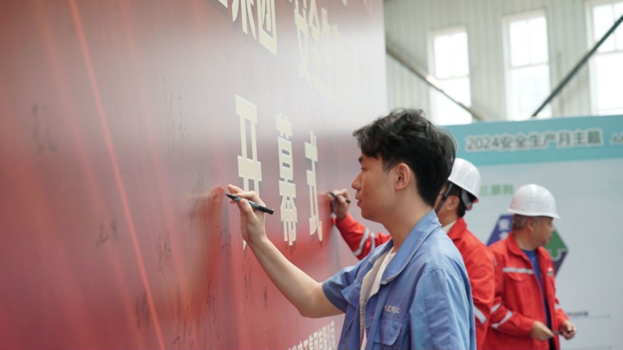 啟動儀式最后,經(jīng)開投路面材料公司、文鼎公司職工代表分別作安全宣誓,全體參會人員依次在”人人講安全、個會應(yīng)急"主題展板上簽字。