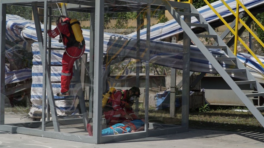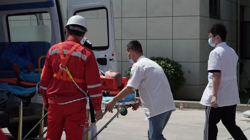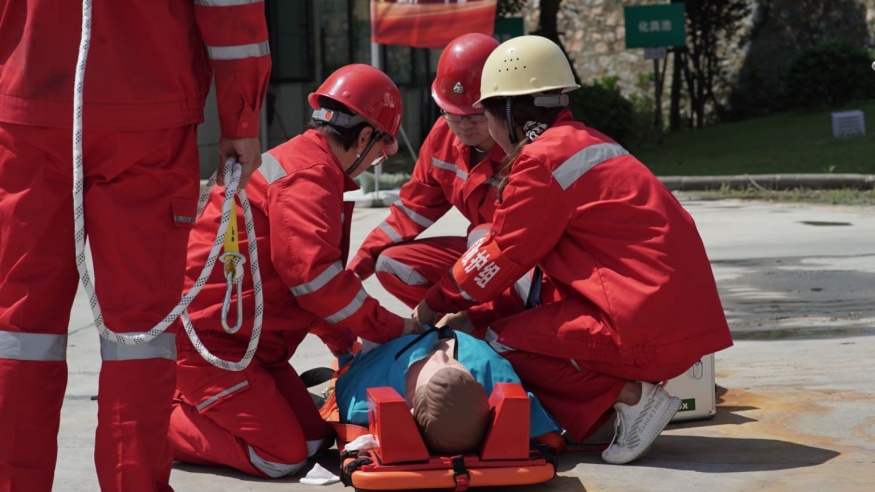 啟動儀式后,黃石市經(jīng)開投路面材料公司開展應(yīng)急演練活動演練以模擬有限空間作業(yè)環(huán)境下人員缺氧窒息暈倒為背景。事故發(fā)生后,安全保衛(wèi)組、事故救援組、醫(yī)療救護(hù)組、后勤保障組等各應(yīng)急小組迅速趕赴現(xiàn)場,采取有效措施進(jìn)行事故應(yīng)急救援。演練全程用時僅15分鐘,演練過程緊張有序,程序規(guī)范、場景真實(shí)、反應(yīng)快速、效果良好。應(yīng)急演練活動進(jìn)一步提升了建工集團(tuán)安全員處置突發(fā)事件的水平和應(yīng)急處置能力,為完善突發(fā)事件應(yīng)急預(yù)案提供了寶貴的實(shí)踐經(jīng)驗(yàn)。