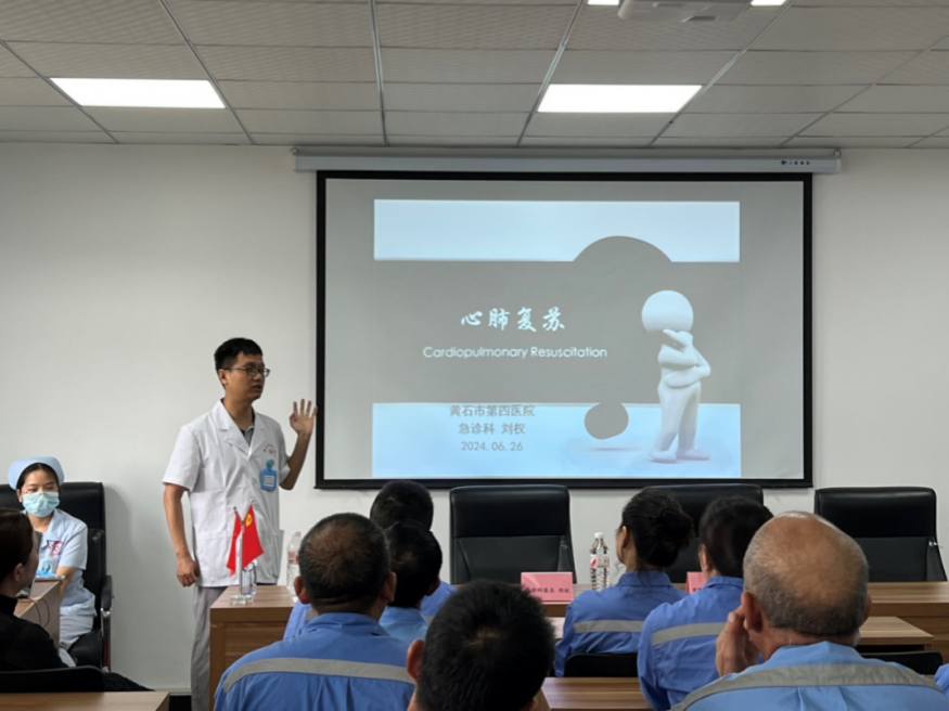 隨后,黃石市第四醫(yī)院急診科醫(yī)生劉權(quán)通過(guò)理論講解、示范操作、互動(dòng)交流和現(xiàn)場(chǎng)演練等方式,系統(tǒng)講授了如何實(shí)施心肺復(fù)蘇術(shù),對(duì)確認(rèn)現(xiàn)場(chǎng)環(huán)境、判斷意識(shí)、呼救求助、胸外按壓、開(kāi)放氣道、人工呼吸、重新評(píng)價(jià)生命指證等環(huán)節(jié)一一進(jìn)行詳細(xì)講解和演示,并與大家積極互動(dòng),幫助參訓(xùn)人員在實(shí)際操作中感受了整個(gè)急救過(guò)程,較好地掌握了心肺復(fù)蘇法的操作技能,現(xiàn)場(chǎng)氣氛熱烈,培訓(xùn)效果很好。