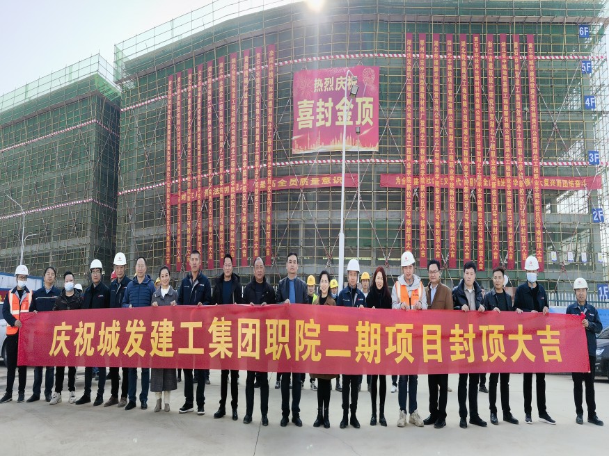 2023年1月9日上午,在湖北工程職業(yè)學院新校區(qū)(二期)生活區(qū)宿舍樓項目現(xiàn)場舉行主體結構封頂儀式。城發(fā)建工集團黨總支書記、董事長潘明亮,城發(fā)建工集團黨總支委員、副總經(jīng)理洪登峰出席活動,城發(fā)建設公司、城發(fā)渣土公司、城發(fā)商砼公司相關負責同志,施工單位、監(jiān)理單位、咨詢設計單位等參建各方代表參加項目主體結構封頂儀式。